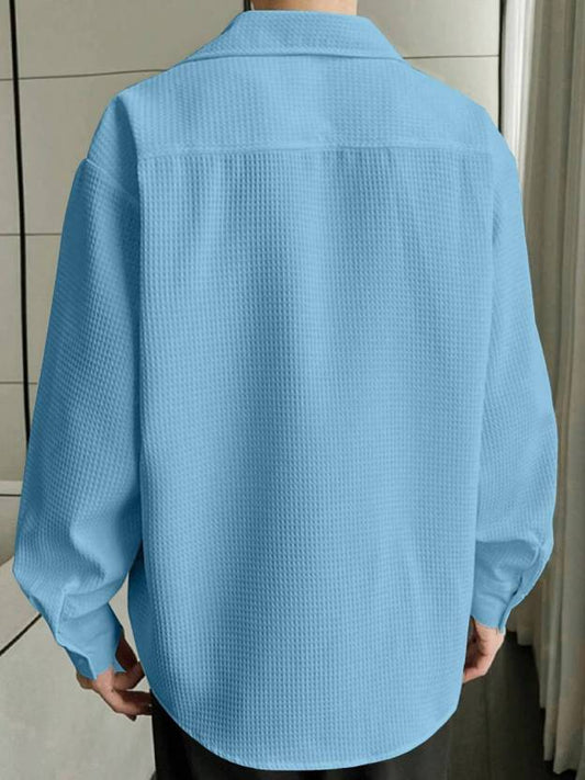 Men Regular Fit Checkered Ribbed Collar Casual Shirt