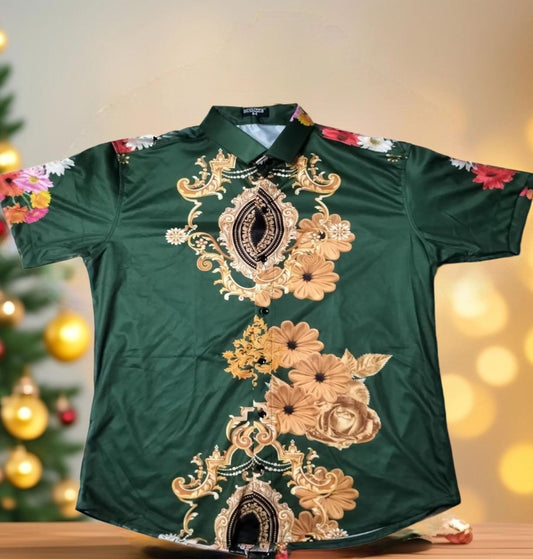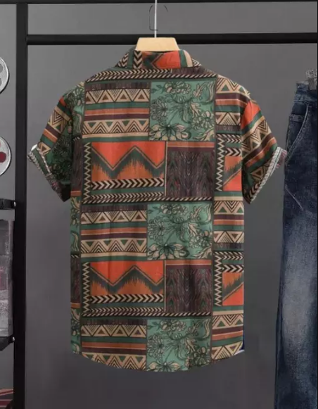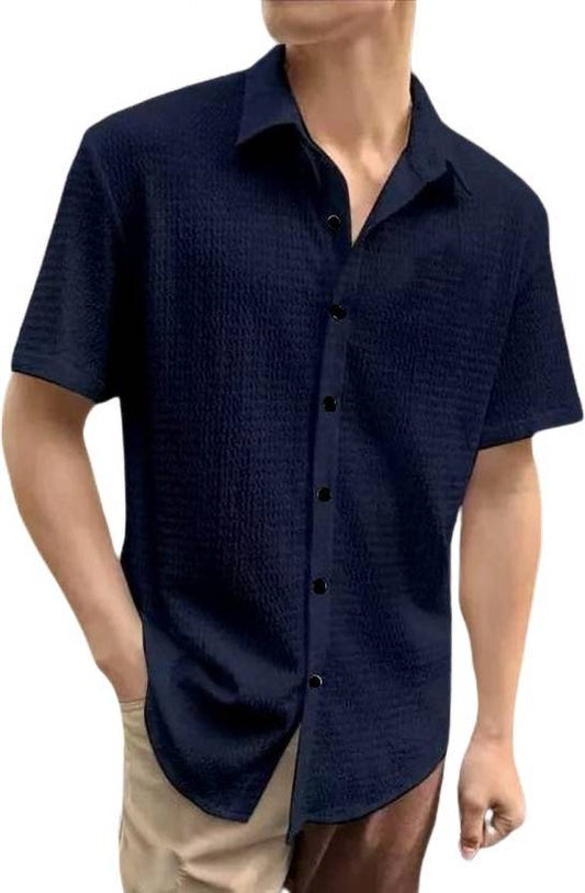 Men Regular Fit Printed Ribbed Collar Casual Shirt